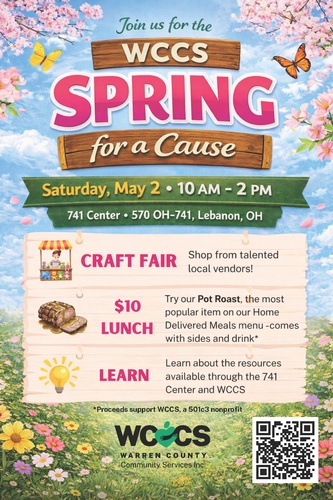 On May 2, Warren County Community Services will be hosting Spring for a Cause, our first event since before COVID. We’re excited to welcome the community into our 741 Center in Lebanon and invite them to enjoy a meal and shop from local craft vendors. All proceeds support our programs, particularly the 741 Senior Center activities.